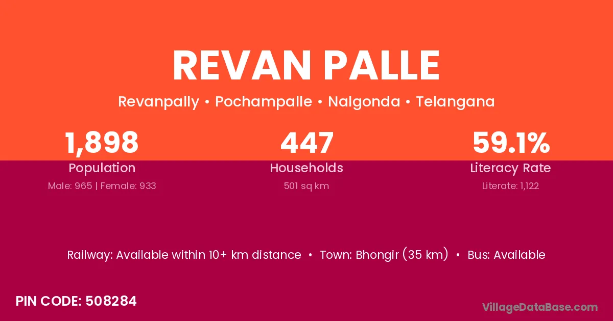 Bhongir (35 km) is the nearest town to Revan Palle village for major economic activities and is located approximately 35 km away.