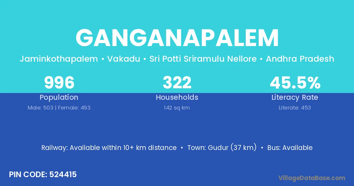 Nalgonda (22 km) is the nearest town to Ganganapalem village for major economic activities and is located approximately 22 km away.