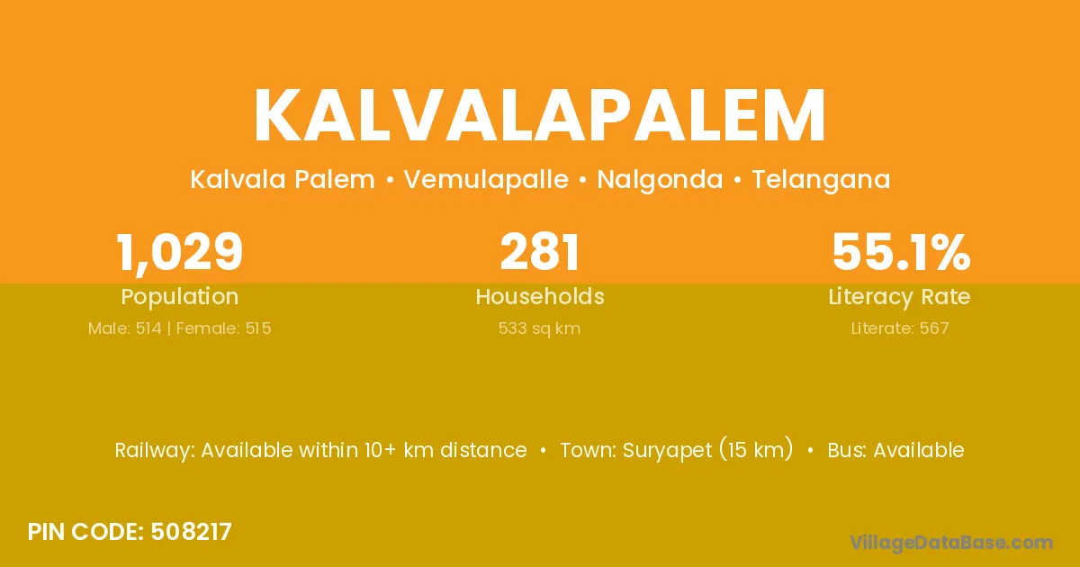 According to Census 2011 information, the village code of Kalvalapalem village is 508217.
