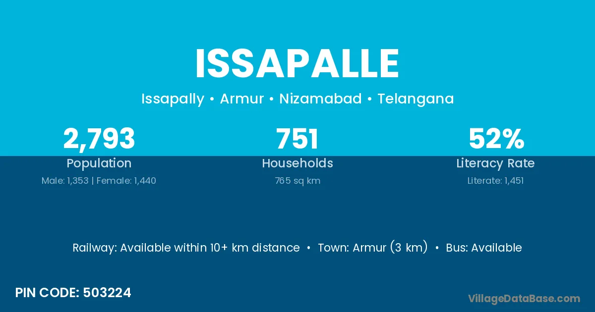 Armur (3 km) is the nearest town to Issapalle village for major economic activities and is located approximately 3 km away.