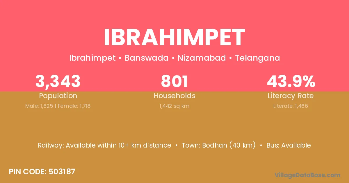 Bodhan (40 km) is the nearest town to Ibrahimpet village for major economic activities and is located approximately 40 km away.
