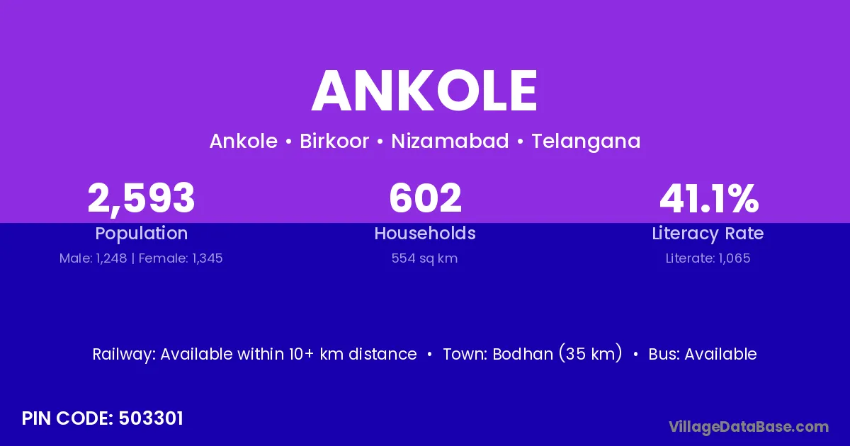 Bodhan (35 km) is the nearest town to Ankole village for major economic activities and is located approximately 35 km away.