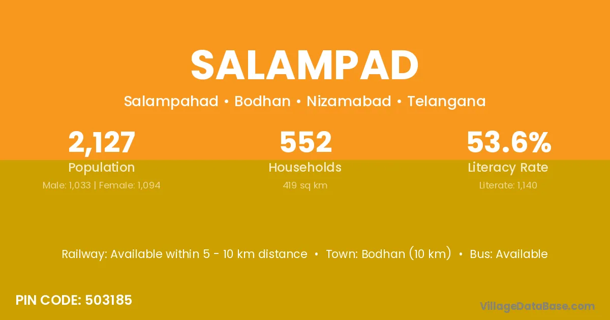 Bodhan (10 km) is the nearest town to Salampad village for major economic activities and is located approximately 10 km away.