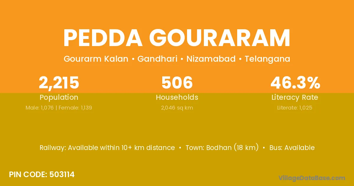 Bodhan (18 km) is the nearest town to Pedda Gouraram village for major economic activities and is located approximately 18 km away.