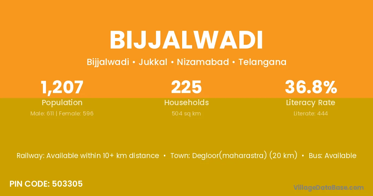 Bijjalwadi village has a total population of 1,207 people, of which 611 are males and 596 are females.