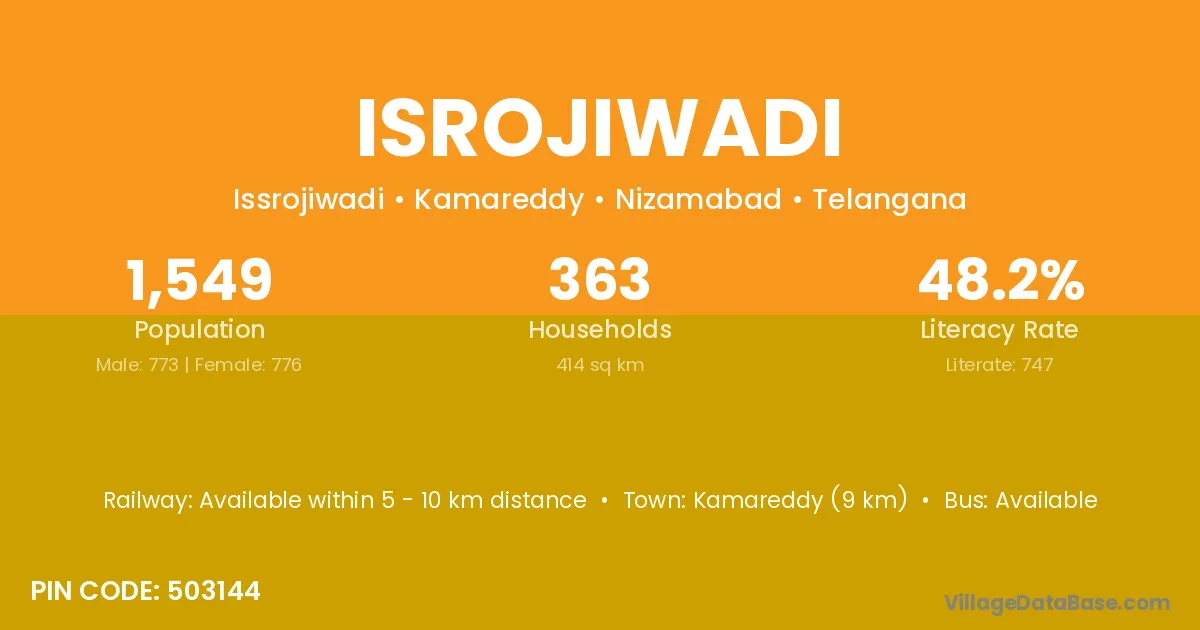 Kamareddy (9 km) is the nearest town to Isrojiwadi village for major economic activities and is located approximately 9 km away.