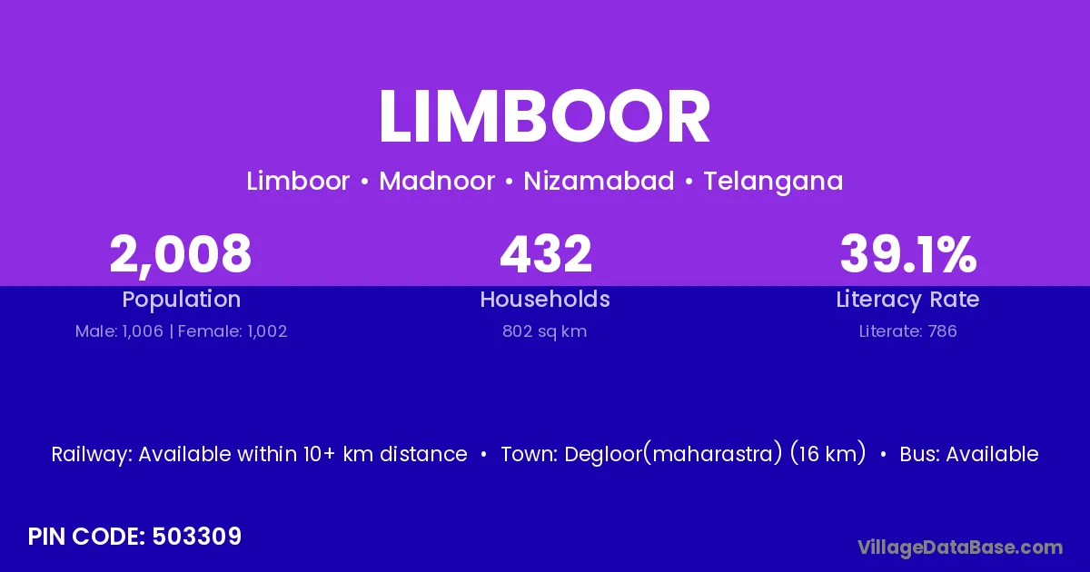 According to Census 2011 information, the village code of Limboor village is 503309.