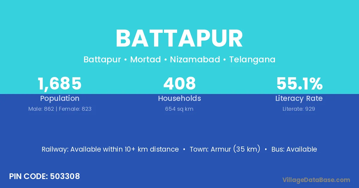 Armur (35 km) is the nearest town to Battapur village for major economic activities and is located approximately 35 km away.