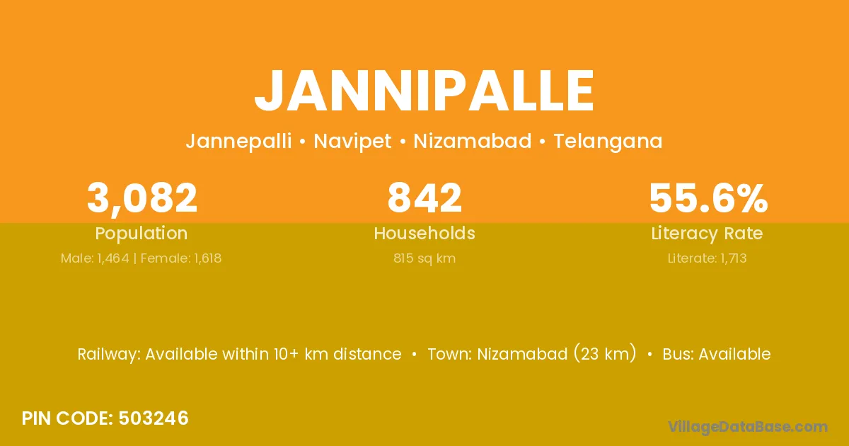 Nizamabad (23 km) is the nearest town to Jannipalle village for major economic activities and is located approximately 23 km away.