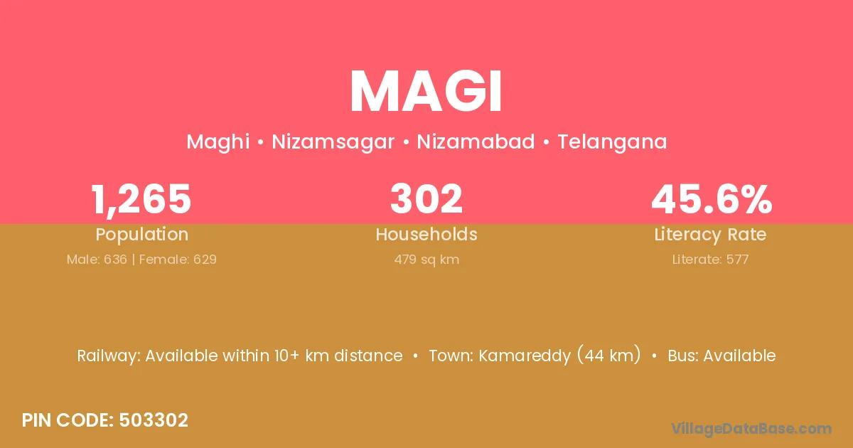 Kamareddy (44 km) is the nearest town to Magi village for major economic activities and is located approximately 44 km away.