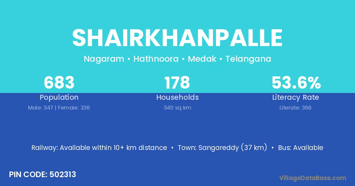 According to Census 2011 information, the village code of Shairkhanpalle village is 503302.