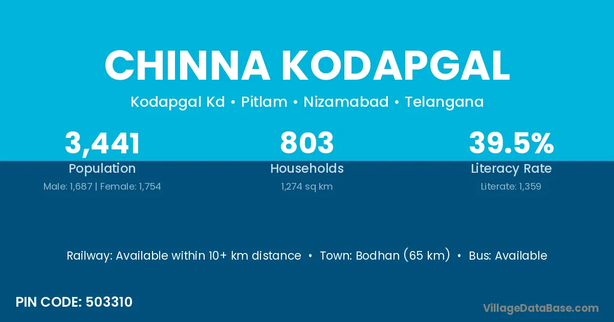 Bodhan (65 km) is the nearest town to Chinna Kodapgal village for major economic activities and is located approximately 65 km away.