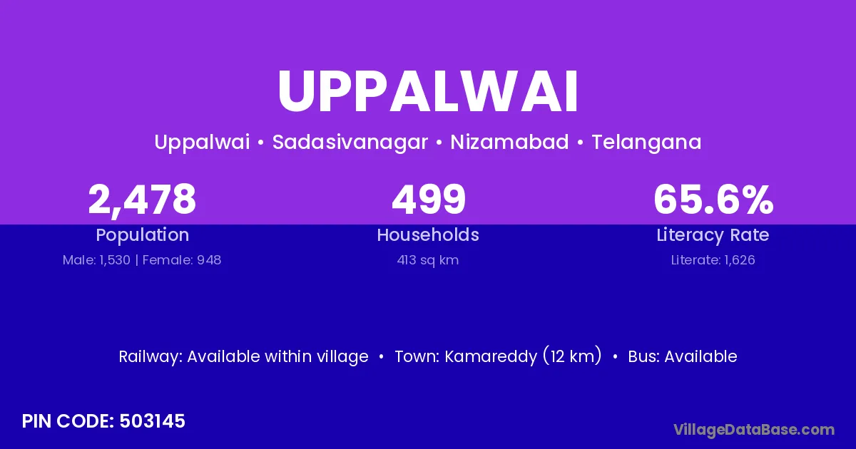 Kamareddy (12 km) is the nearest town to Uppalwai village for major economic activities and is located approximately 12 km away.