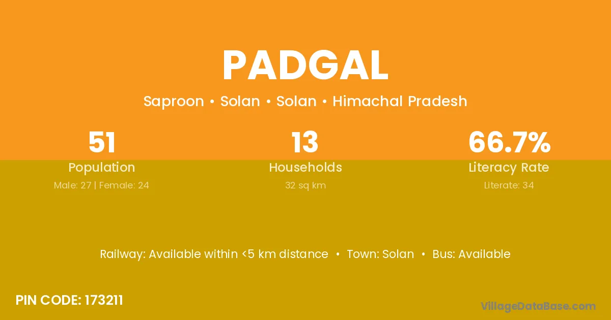 Padgal village has a total population of 5,688 people, of which 2,811 are males and 2,877 are females.