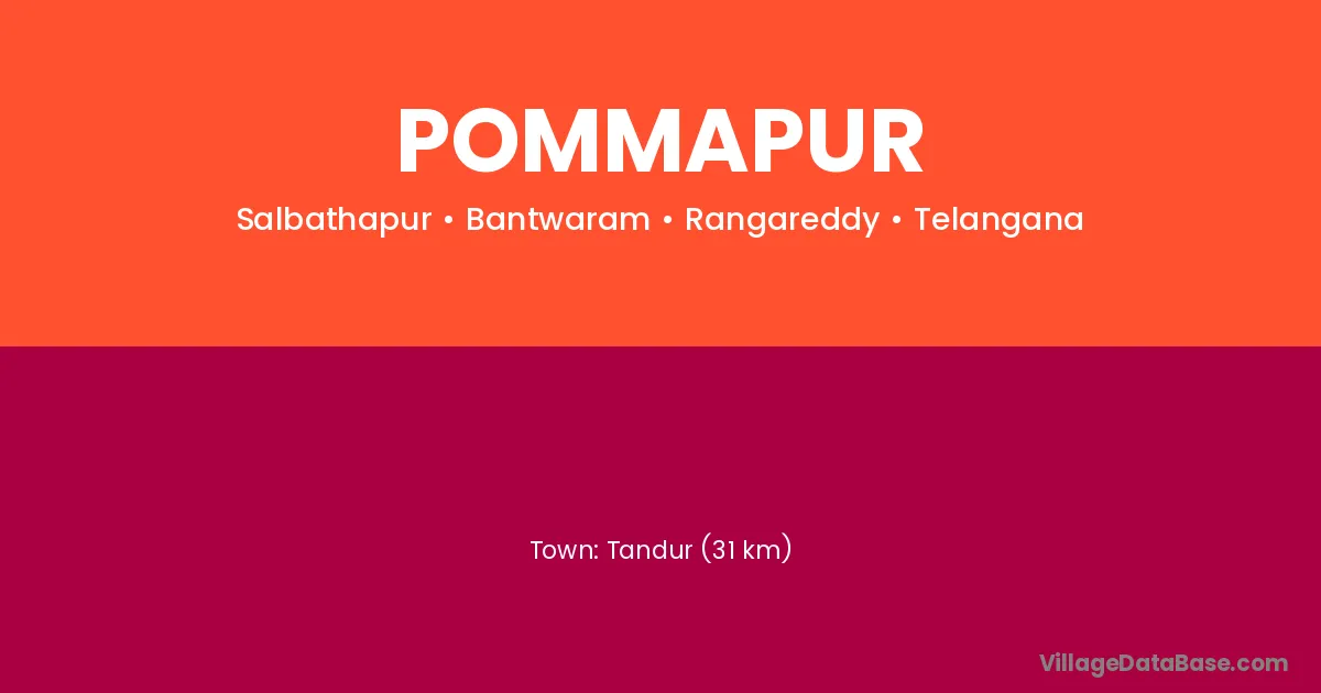 Tandur (31 km) is the nearest town to Pommapur village for major economic activities and is located approximately 31 km away.
