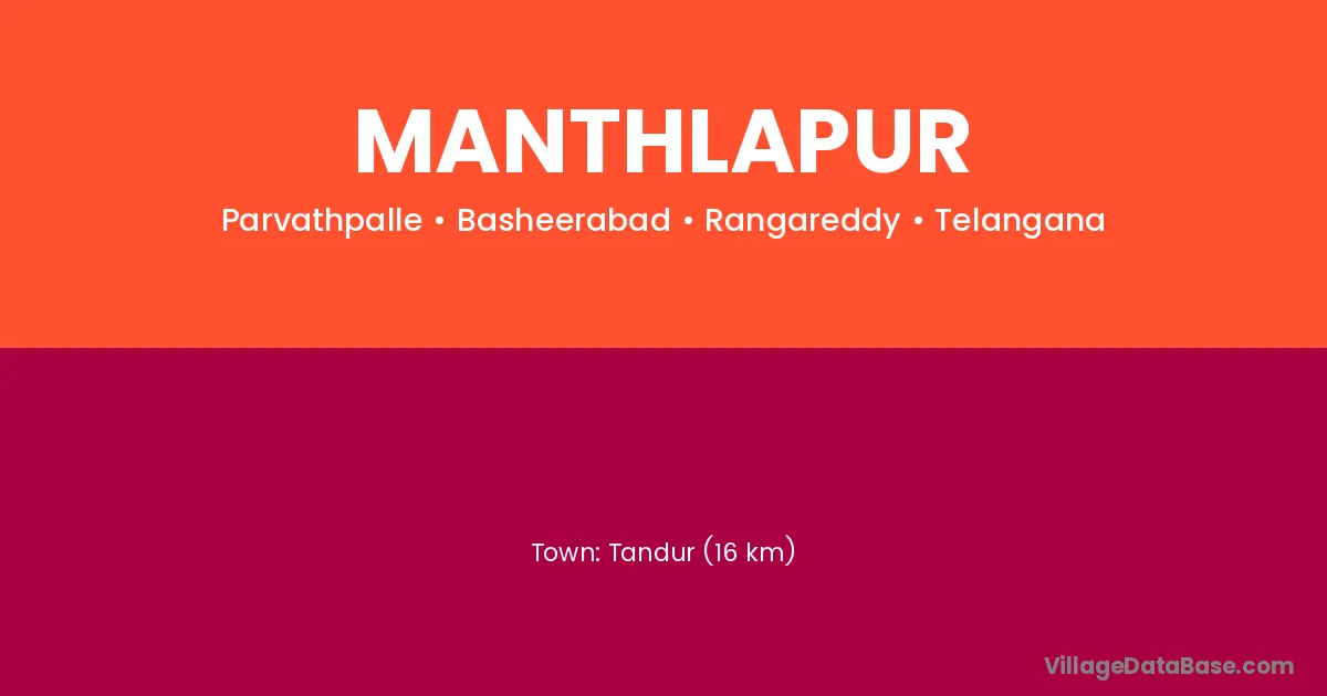 Tandur (16 km) is the nearest town to Manthlapur village for major economic activities and is located approximately 16 km away.