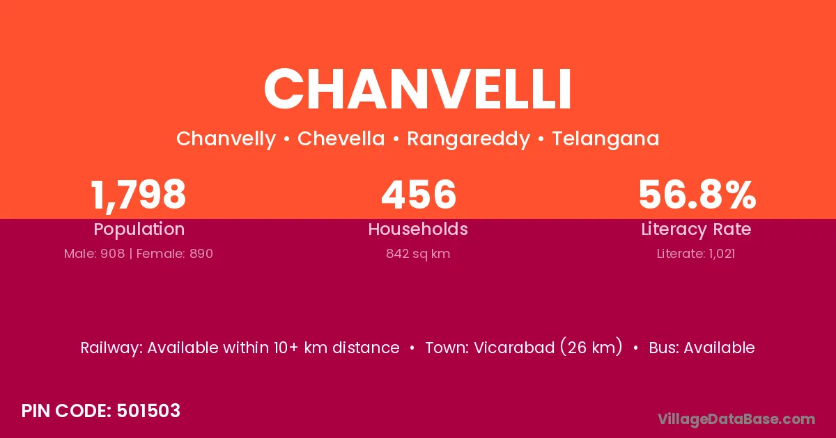 Vicarabad (26 km) is the nearest town to Chanvelli village for major economic activities and is located approximately 26 km away.