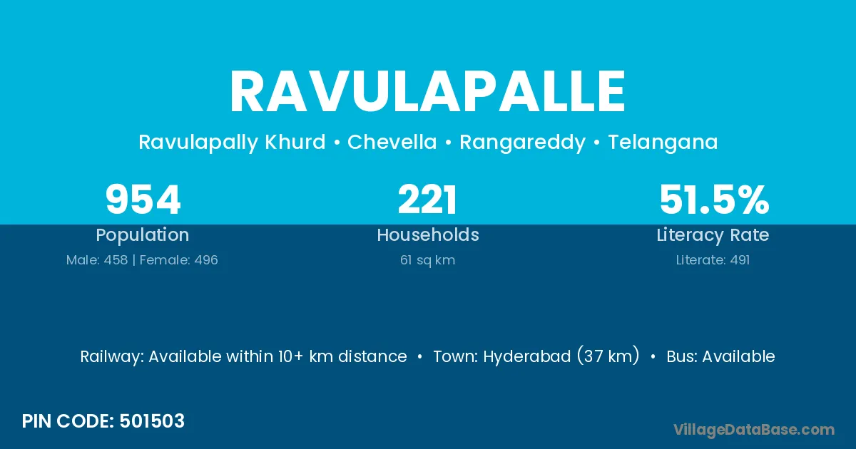 According to Census 2011 information, the village code of Ravulapalle village is 501503.