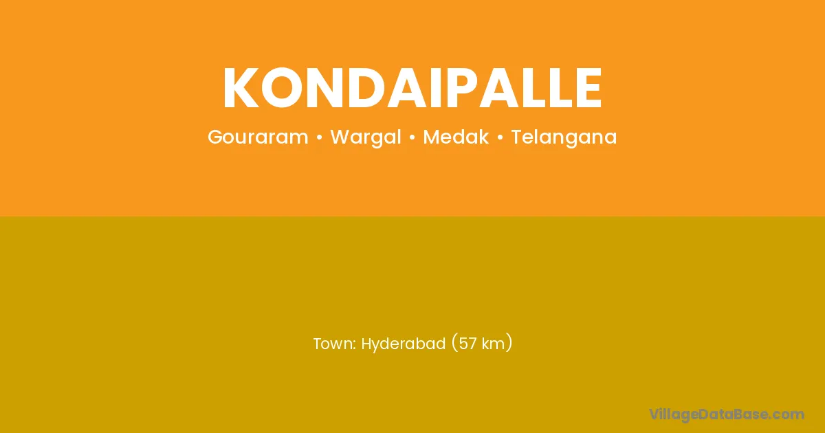 Vicarabad (48 km) is the nearest town to Kondaipalle village for major economic activities and is located approximately 48 km away.