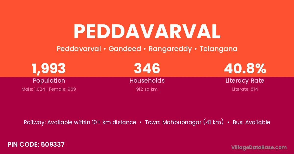 Mahbubnagar (41 km) is the nearest town to Peddavarval village for major economic activities and is located approximately 41 km away.