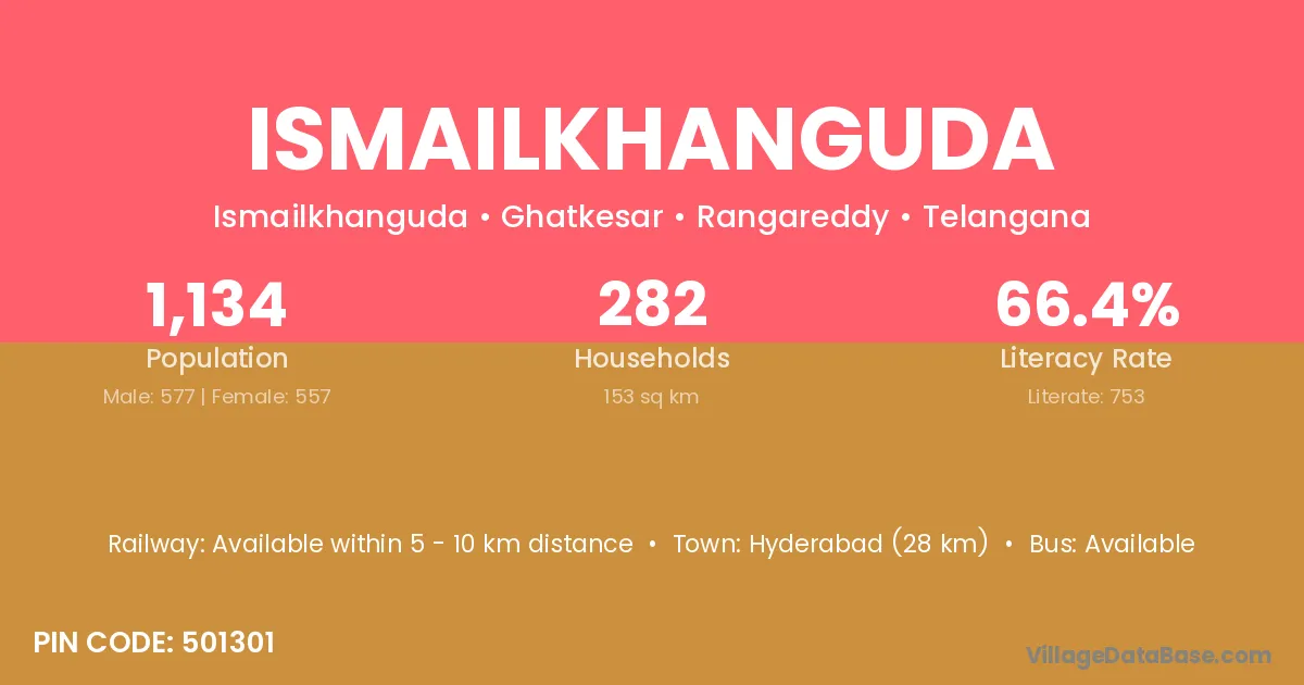 According to Census 2011 information, the village code of Ismailkhanguda village is 501301.