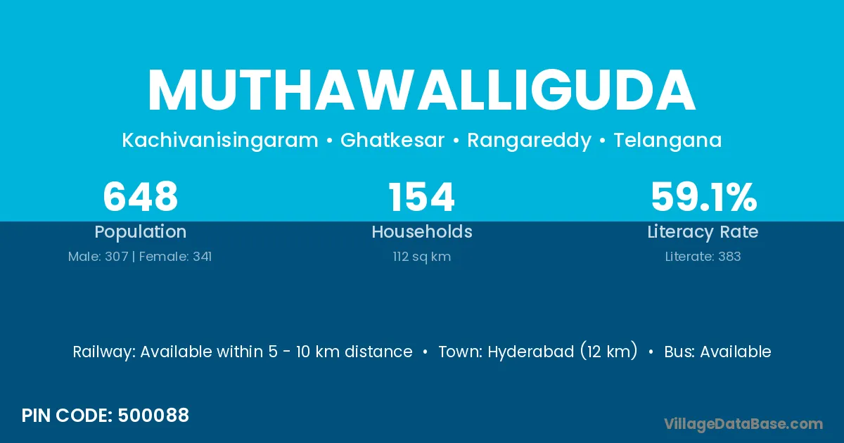 Hyderabad (12 km) is the nearest town to Muthawalliguda village for major economic activities and is located approximately 12 km away.