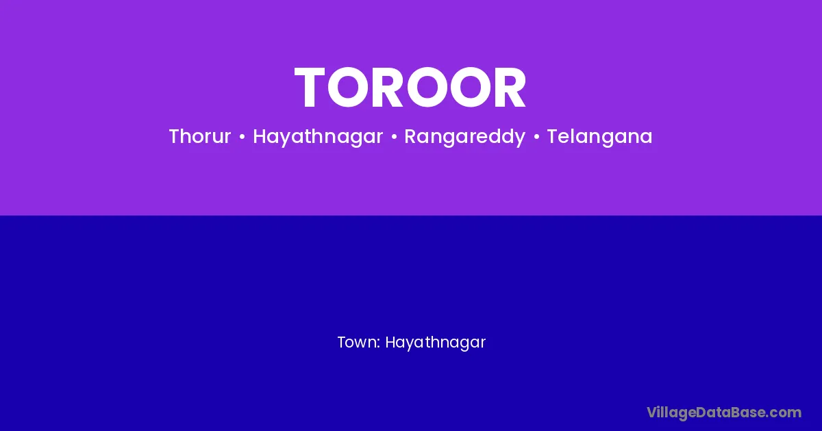 Hayathnagar is the nearest town to Toroor village for major economic activities