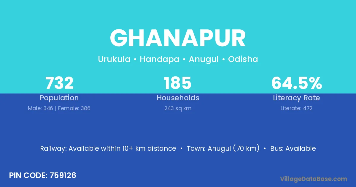 Ghanapur village has a total population of 1,466 people, of which 716 are males and 750 are females.