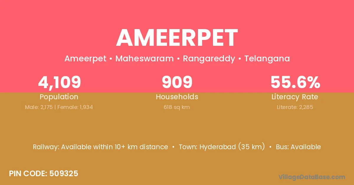 According to Census 2011 information, the village code of Ameerpet village is 509325.