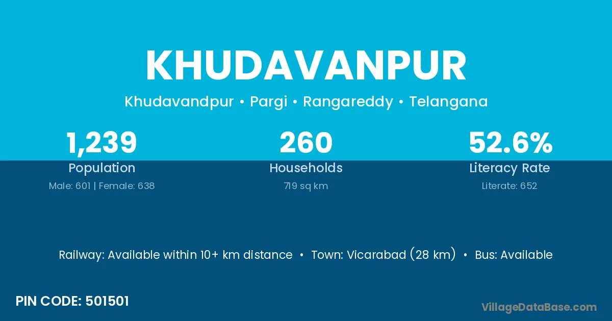 Vicarabad (28 km) is the nearest town to Khudavanpur village for major economic activities and is located approximately 28 km away.