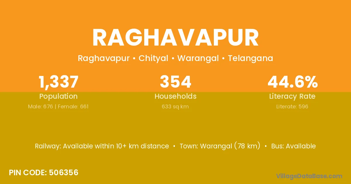 Vicarabad (26 km) is the nearest town to Raghavapur village for major economic activities and is located approximately 26 km away.