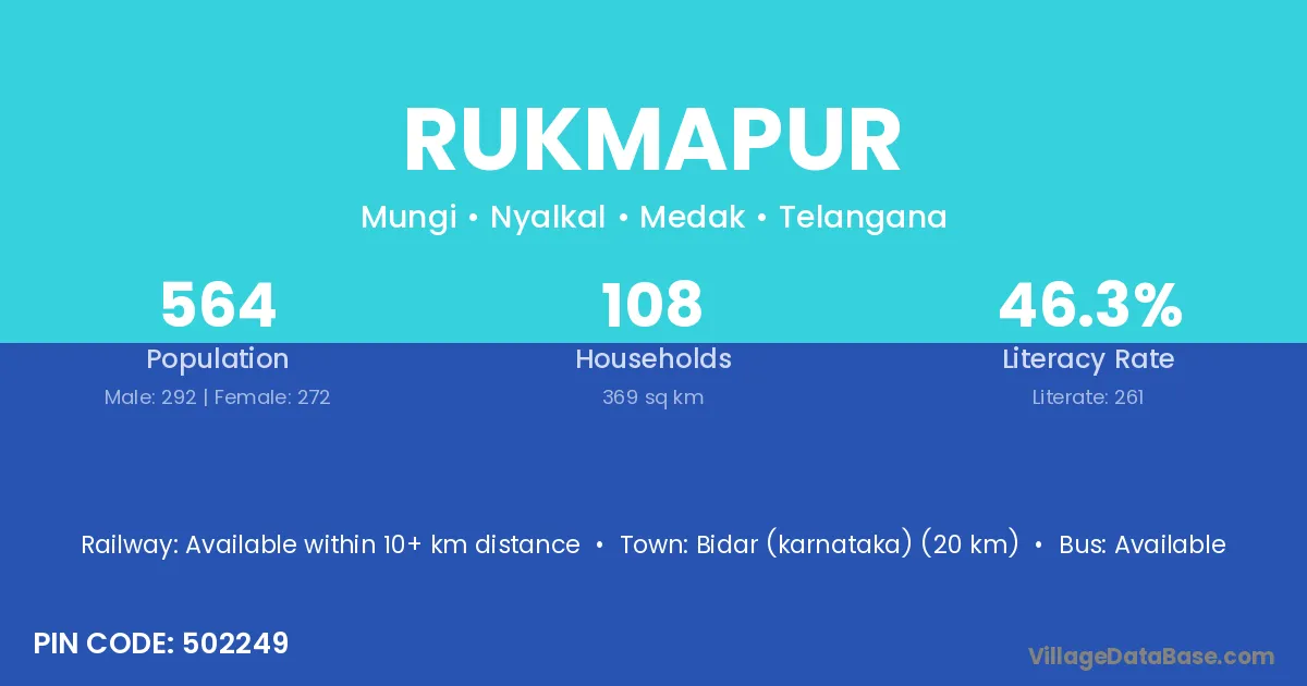 According to Census 2011 information, the village code of Rukmapur village is 501142.