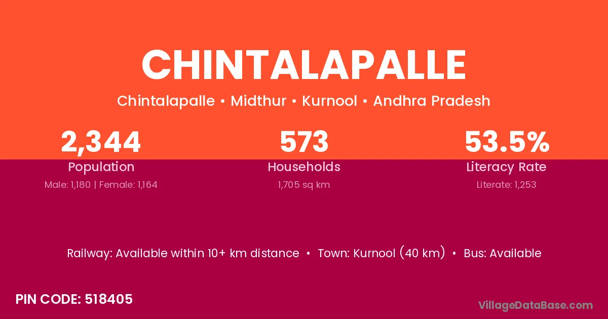 Vicarabad (30 km) is the nearest town to Chintalapalle village for major economic activities and is located approximately 30 km away.