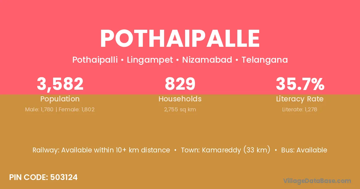 According to Census 2011 information, the village code of Pothaipalle village is 500078.