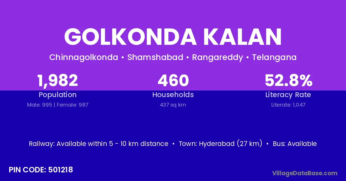 According to Census 2011 information, the village code of Golkonda Kalan village is 501218.