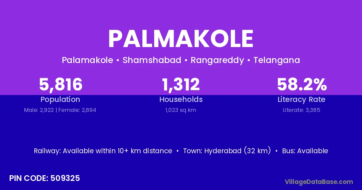 Hyderabad (32 km) is the nearest town to Palmakole village for major economic activities and is located approximately 32 km away.
