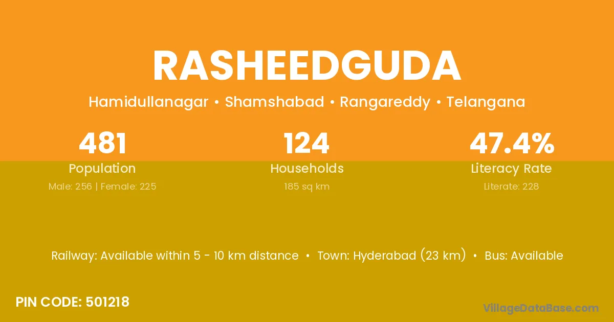 Rasheedguda village has a total population of 481 people, of which 256 are males and 225 are females.
