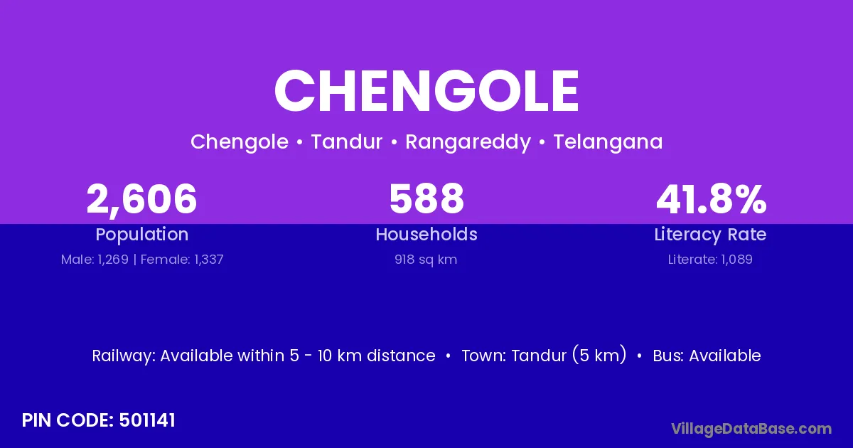 Tandur (5 km) is the nearest town to Chengole village for major economic activities and is located approximately 5 km away.