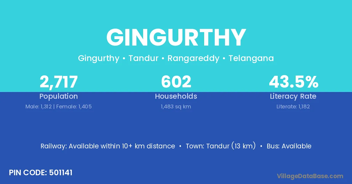 Tandur (13 km) is the nearest town to Gingurthy village for major economic activities and is located approximately 13 km away.