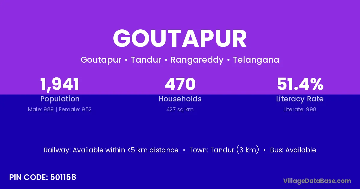 Tandur (3 km) is the nearest town to Goutapur village for major economic activities and is located approximately 3 km away.