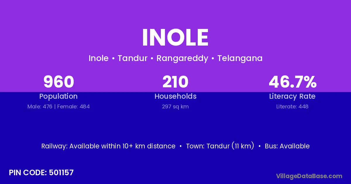 Tandur (11 km) is the nearest town to Inole village for major economic activities and is located approximately 11 km away.