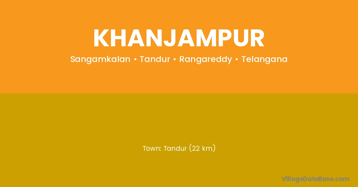 Tandur (22 km) is the nearest town to Khanjampur village for major economic activities and is located approximately 22 km away.
