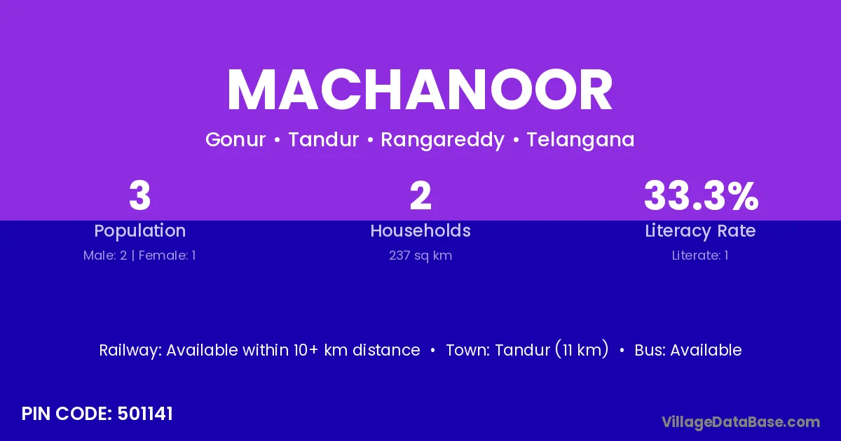 Tandur (11 km) is the nearest town to Machanoor village for major economic activities and is located approximately 11 km away.
