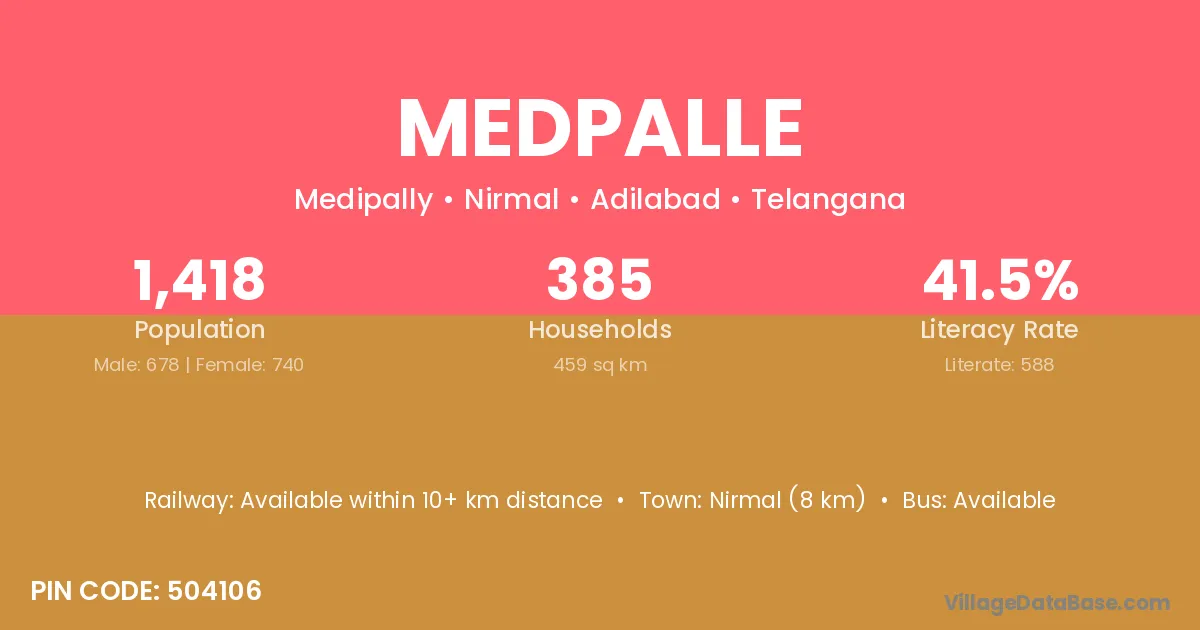 According to Census 2011 information, the village code of Medpalle village is 501509.