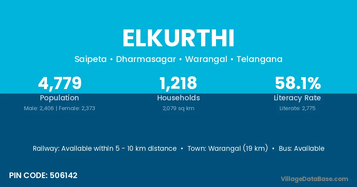 Warangal (19 km) is the nearest town to Elkurthi village for major economic activities and is located approximately 19 km away.