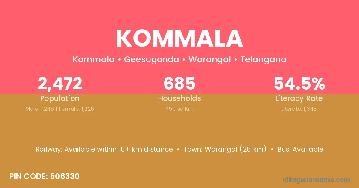According to Census 2011 information, the village code of Kommala village is 506330.
