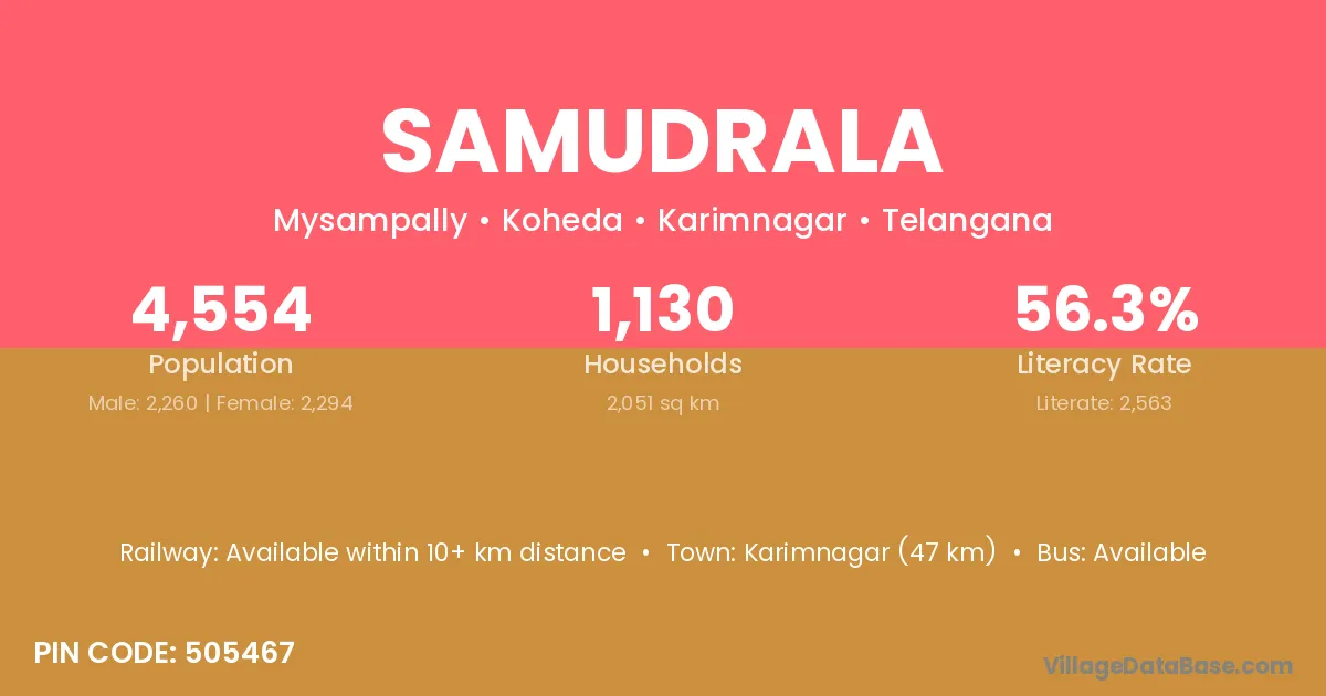 According to Census 2011 information, the village code of Samudrala village is 506252.