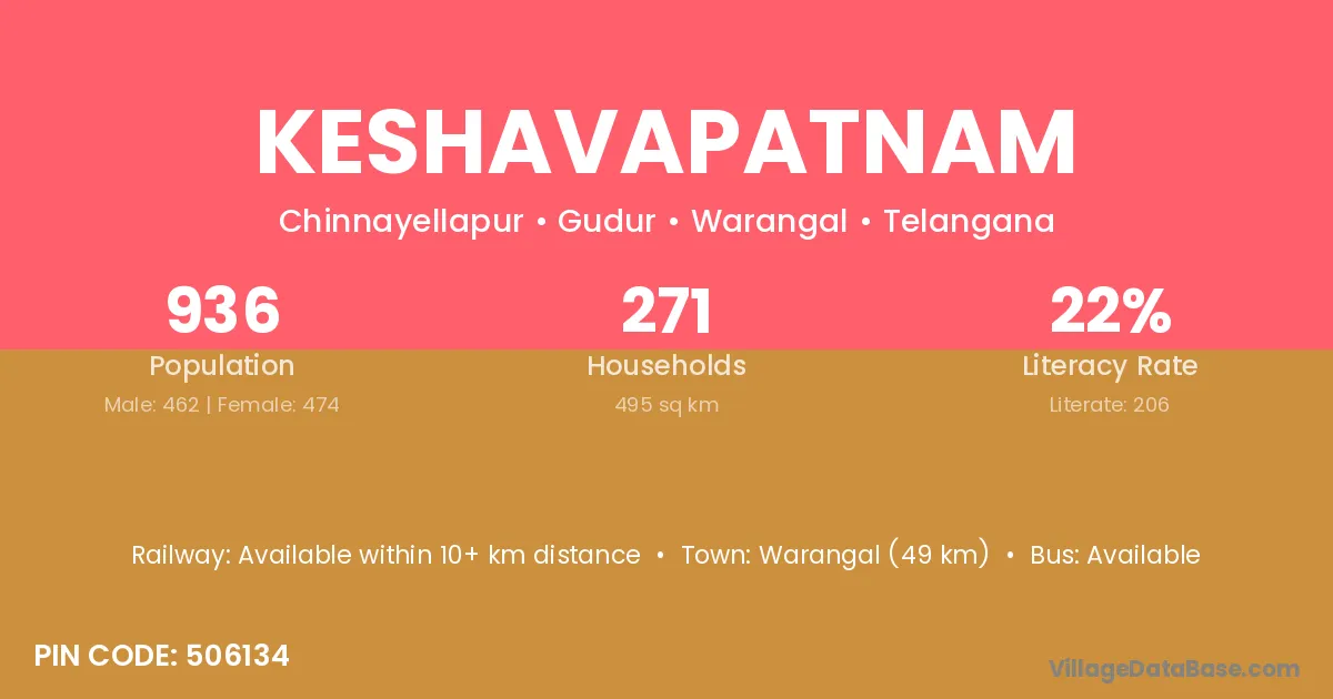 According to Census 2011 information, the village code of Keshavapatnam village is 506134.