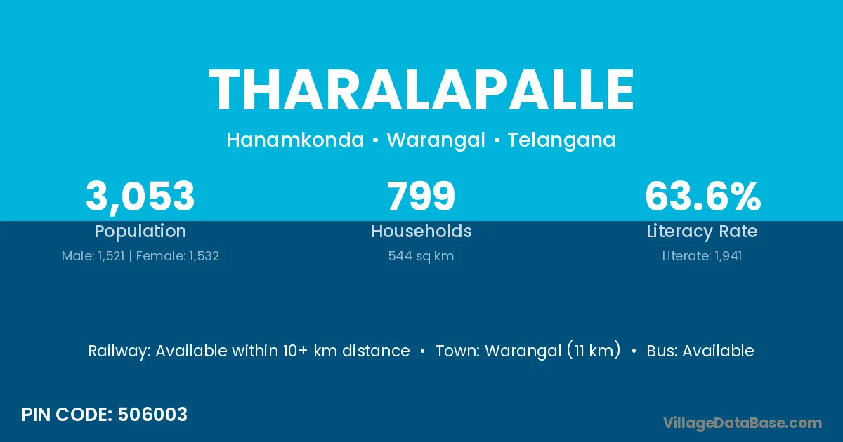 According to Census 2011 information, the village code of Tharalapalle village is 506003.