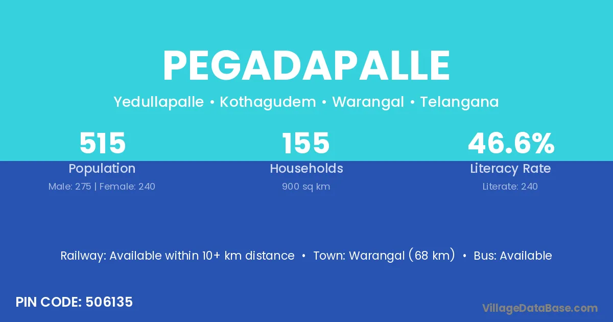 Hasanparthy is the nearest town to Pegadapalle village for major economic activities